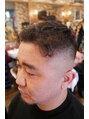 0mm高めのスキンフェードです!前髪は、真ん中だけあげてサイドは流したいとの事で、ラウンドにデザインしました。トップもワックスでふんわり仕上げました。セットがとっても楽ちんなスタイルです♪