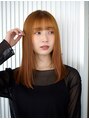 ミディアム 前髪デジタルパーマ オレンジチェリーブラウン
