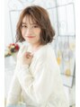 ★お気に入りスタイルは【ブックマーク】を★無造作なくせ毛風カールで動きを出したナチュラルボブ。カーキベージュやオリーブベージュなど明るめカラーがおすすめ♪前髪は目の上ギリギリの透け感バングで目元を印象づけて目力UP!