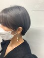 少しタイトな丸みショートボブ☆耳にかけれる長さで顔周りもレイヤーが入ってて小顔見せ♪暗めのアッシュグレー赤味を打ち消してくれるくすみ透明感カラー◎