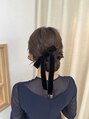 ベロアリボン×シニヨンアレンジです(*^^*)卒業式のご予約も受付中です!結婚式参列~ライブ・イベントヘアまで☆【表参道/ヘアセット】インスタ @ felice_yuina