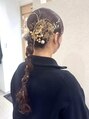 タイトでシンプルな編み下ろしにヘア飾りで華やかに♪成人式、大学卒業用の場合、ヘア飾りや髪型を前もって打ち合わせする事をお願いしております。当日のお時間は約1時間ほどで料金は8800円+指名料550円です。お気軽にお問い合わせ下さい。