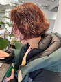 オレンジボブ/ボブ/スパイラルパーマ/オレンジカラー/オレンジ