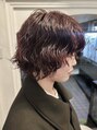 【白石】ショートボブウェーブヘアパーマワインレッド10代20代