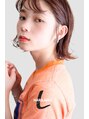 原宿切りっぱなしボブ外ハネボブ大人ボブ透明感カラーオレンジ
