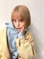 ぷつっとカットのミニボブにハイトーンカラーがかわいいカジュアルモードなヘアスタイル*ストレートアイロンでぴたっとコンパクトに*《ブリーチは2回以上必須》