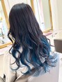 ブルーグラデーション×ウェーブロングハイライトカラー