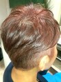 昔からショートの御婦人。最近は刈上げがマイブーム…ツーブロックで、11ミリのバリカンで刈ってます。白髪染めも毎回i色味を少しずつ変え、今回はカシスオレンジ!仕事場での評判が良いそうです。