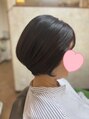 毛量が多くクセ毛があるお客様。肩につく長さのボブから、スッキリしつつ短すぎないショートスタイルに♪骨格に合わせてお顔周りを菱形のラインになるようにカットして、全体に軽さを出しました!カラーは少し明るめのレッド系に◎
