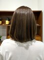 毛量の多いお客様。右側が跳ねやすので跳ねにくくとのことでした。あまり長さは切らずにグラデーションを入れて収まりやすく。カラーも明るさは変えずにアッシュをいれています。髪質改善も同時に行ったため、ツヤのあるしなやかなスタイルになっています。