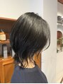 ヘアカラーとパーマで髪のダメージが気になるので、短くしたいが膨らんでしまう。そんなお悩みのお客様でした。襟足に膨らむクセがあるので、頭の丸みに合わせてカットしています。