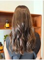 毛量が多く広がってしまうことがお悩みのお客様です。トップにレイヤーを入れて毛ながれが出るように。ヘアカラーを明るくして軽く見えるようにしています。