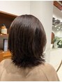 クセがあり、広がってしまうことがお悩みのお客様です。すいてしまうとクセが強く出てしまうので、トップからレイヤーを入れて毛量調整しています。