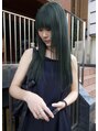 モスグリーンカラー切りっぱなしロングヘア
