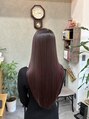 1本1本の髪質が変わるツヤツヤの髪質改善ストレートと、ブリーチなしで染めるガーネットレッドカットは顔周りに動きが出るようなレイヤーカット