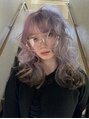 明るいトーンのピンクとブルー、毛先に裾カラー