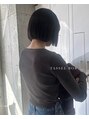 丸くならないパツッとボブ。クセがあり、広がりやすいとのことでしたので内側の襟足の髪の毛にレイヤーを入れることで、収まりやすくしパツッとタイトなボブに仕上げました!