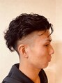 サイド・バックは1ミリのツーブロックでスッキリ感を出し、トップはイレギュラーカールで無造作感をだしおしゃれに仕上げました。