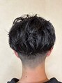 サイドからバックにかけて2mmバリカンで刈上げ、ハイゾーンはゆるめのニュアンスパーマ(15mm)で直毛に少し動きをつけました。スタイリングはグリースを少量つけて整えました