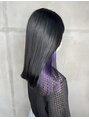 ブリーチ2回~のインナーパープルです!!表面はコントラストをつけてブルーブラックでガッツリ暗くしています◎