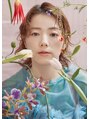 透明感にこだわってメイクと柔らかなパーマショートヘアで仕上がりました。抜け感、透明感をポイントに春らしいセミウェットなスタイリングにしています。