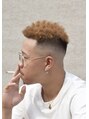 ストリート系アフロパーマトップはアフロスポンジで束感が出るように細かいパーマでアフロスタイルにスキンフェードとの相性も◎<理容室>[バーバー/フェード/スキンフェード/福生]