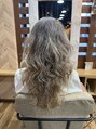 トップはボリューム出して毛先はなるべく重さを残してカールを出すスタイルに仕上げました。グレイヘアーですがすごく動き残しあるスタイルです。