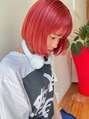 ミニボブスタイルに鮮やかなレッドカラー!ショートだからこそ可愛い原色カラー!個性的なカラーもお任せください!ブリーチカラーについてはしっかりとカウンセリングをしてお客様に似合うカラーを提案します!