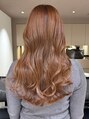 - オレンジカラー/暖色カラー/オレンジブラウン/アプリコット/ブリーチなしダブルカラー/恵比寿サロン/前髪