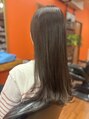 画像ではわかりにくいですけど暗めのパープル系スタイル。長かった暑い日に受けて明るくなってしまった髪にパープル系で綺麗艶やかに!