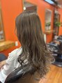 ハイライト+寒色系のオンカラー。ハイライト部分は光の当たり方によって色んな色味に見えます!色落ちしてきてもまた違う表情で楽しめます!