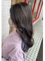 マットなベースにハイライトを入れ、ブルーのインナーカラーをプラス。≪髪質改善/オーガニック/福髪質改善/オーガニック/福井/白髪染め/白髪ぼかしハイライト/次世代髪質改善/和漢/福井/白髪染め/白髪ぼかしハイライト/次世代髪質改善/和漢≫