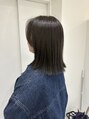 切りっぱなしのミディアムボブに、透明感ある暗めのオリーブカラーで大人のミディアムスタイルに!乾燥でパサつきが気になるこの時期、トリートメントで艶感もアップです!