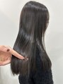 髪質改善トリートメントと一緒にカラーで、内部構造を整えつつ色味を入れて艶々に!暗めのグレージュと艶感あるスタイルの相性ばっちり!