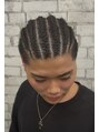 スタッフのスカイくんをモデルに6本ストレートバックのコーンロー!!短いとなかなか難しい(汗)10cmくらいあればギリ編めるかなぁ??くらいです。(ヘアセット¥4400+特殊編み¥2200)※デザインにより施術ができかねる場合がございます。