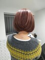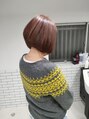 襟足ギリギリから顎ラインのグラデーション前下がりボブ顔周り短すぎるのは嫌でも短くしたい方や、冬はマフラー、コートなどで首元もたつくのが気になる方はオススメです。カラーは白髪をあえてお洒落染めで染めたピンクベージュになります(^^)