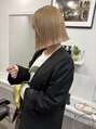 ボブ×ミルクティーベージュ抜きっぱなしブロンド履歴から、落ちる黒染め、1ブリーチで出来る限り明るく^_^前回ボブカットして、今回はなし!綺麗なラインです^_^
