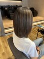 髪質改善ストレートでサラサラになりました。ハイライトを入れられていますが、ブリーチ履歴でもツヤツヤです。スタイリングで外ハネにもしやすい長さにカットしました。