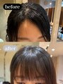 生えクセがあり、前髪が分かれてしまうケースにクロスパーマで思い通りの前髪を作ります◎[前髪/前髪カット/前髪縮毛/クロスパーマ/縮毛矯正/癖毛対応/クセ毛カット/ストレート/ストレートパーマ/コスメストレート/サイドバング/シースルーバング/韓国ヘア]