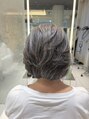 シンプルボブの場合はクールやスタイリッシュな印象ですが、このスタイルはボブにやや毛流れがつくようにレイヤーを入れ、柔らかい、優しい印象につくりました。カラーも白髪染めをやめてナチュラルなグレイヘアに。大人の余裕を感じるフェミニンボブです!