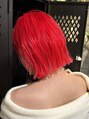 レッドカラー派手髪ダブルカラーケアブリーチブリーチカラーボブ