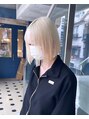 ホワイトカラーハイトーンケアブリーチブロンドダブルカラーボブ