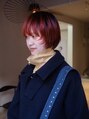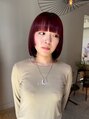 深いレッドカラーのミディアムボブ。丸みを抑えたスタイリングで女性らしさの中にもクールさをプラス。オイルをつけるだけで、ツヤ感がでてまとまります。