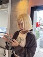 ブリーチ抜きっぱなしのようなブロンドスタイルです。最終的にはシャンプー台にてトナーで少し色調を整えますが、基本的に褪色は気にせず長く楽しめるスタイルです。