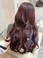 ワインレッドカラーで深みとツヤ感をプラス。光に当たるとほんのり透ける赤みが可愛く、ロングの動きもより柔らかく見せてくれます。重たく見えず大人っぽい印象に仕上がる人気カラーです