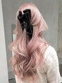 フェミニンロングピンクカラーリボンアレンジハーフアップ