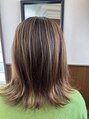 - ハイライトを全体にカラーをいれ、髪質にあわせてカラーデザインをしています