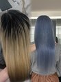 ペールブルー/水色/ロングリタッチ/ブリーチ/ロング/ハイトーン