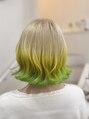 ハイトーンベージュにキイロとキミドリで夏っぽいけど、、こちらは2月に染めました^^暖かい気持ちになりました^^