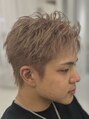 スパイキーショートダブルカラーミルクティーメンズパーマ